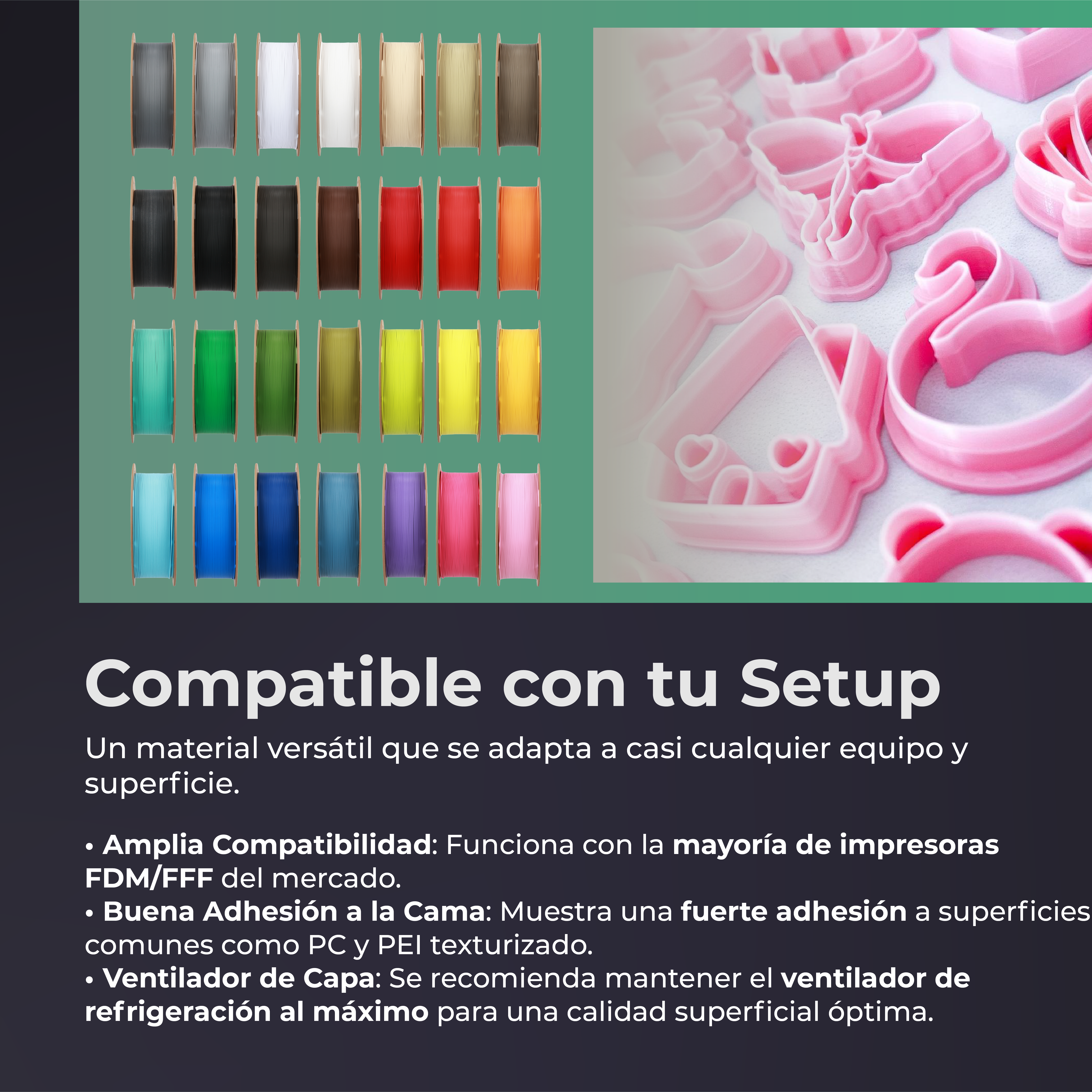 PLA de alta velocidad diseñado para imprimir a gran velocidad con alta precisión y acabados suaves. Estable, fiable y disponible en una amplia gama de colores intensos