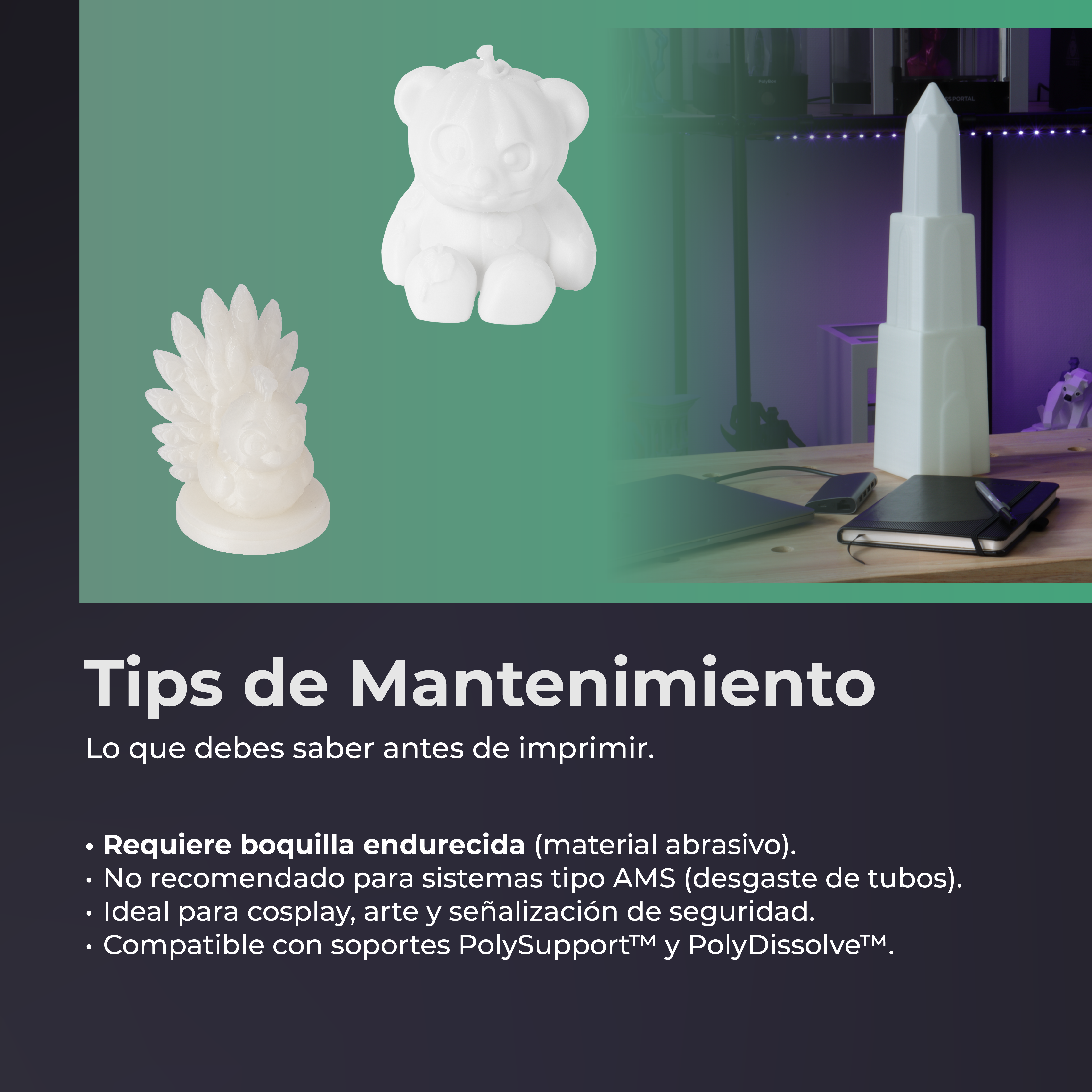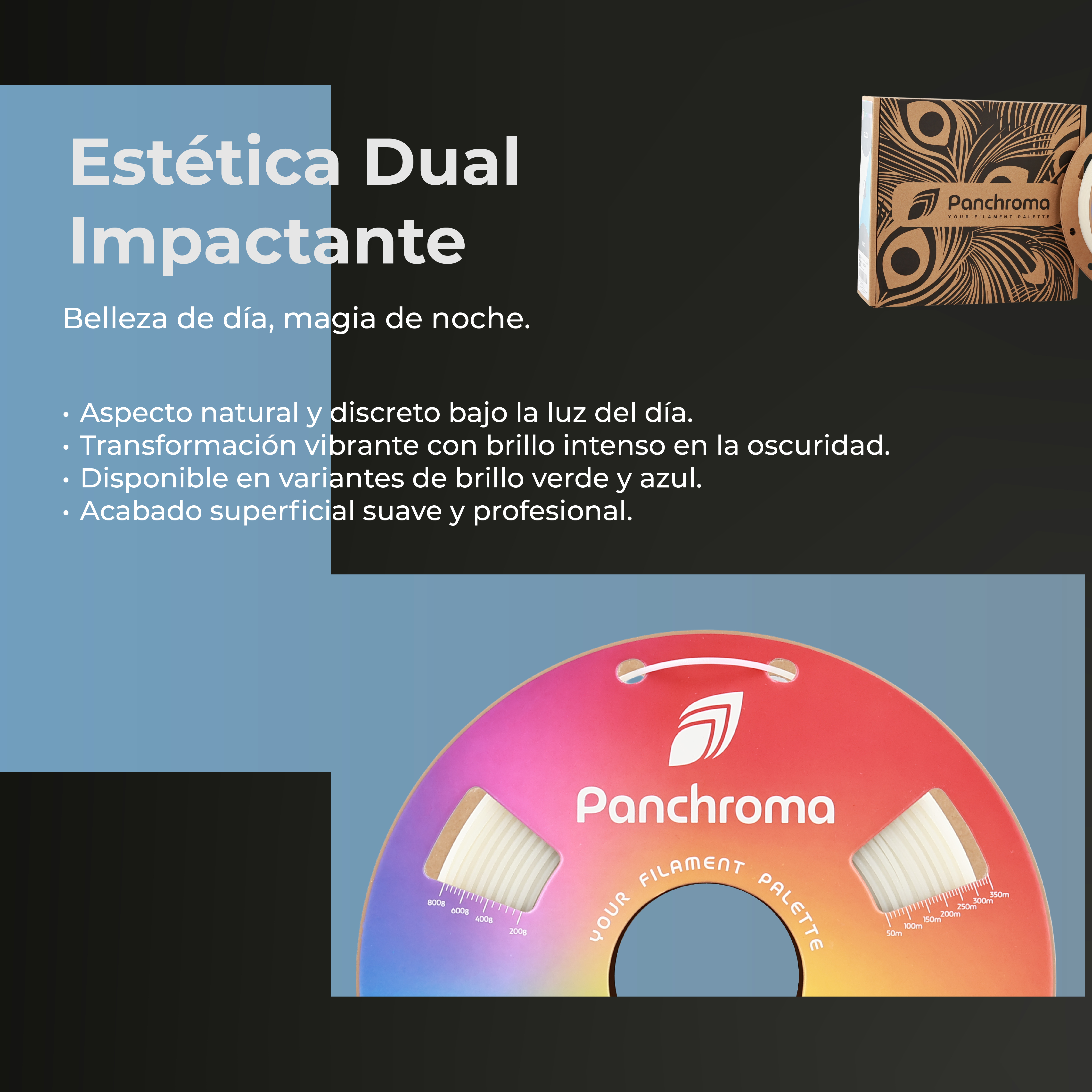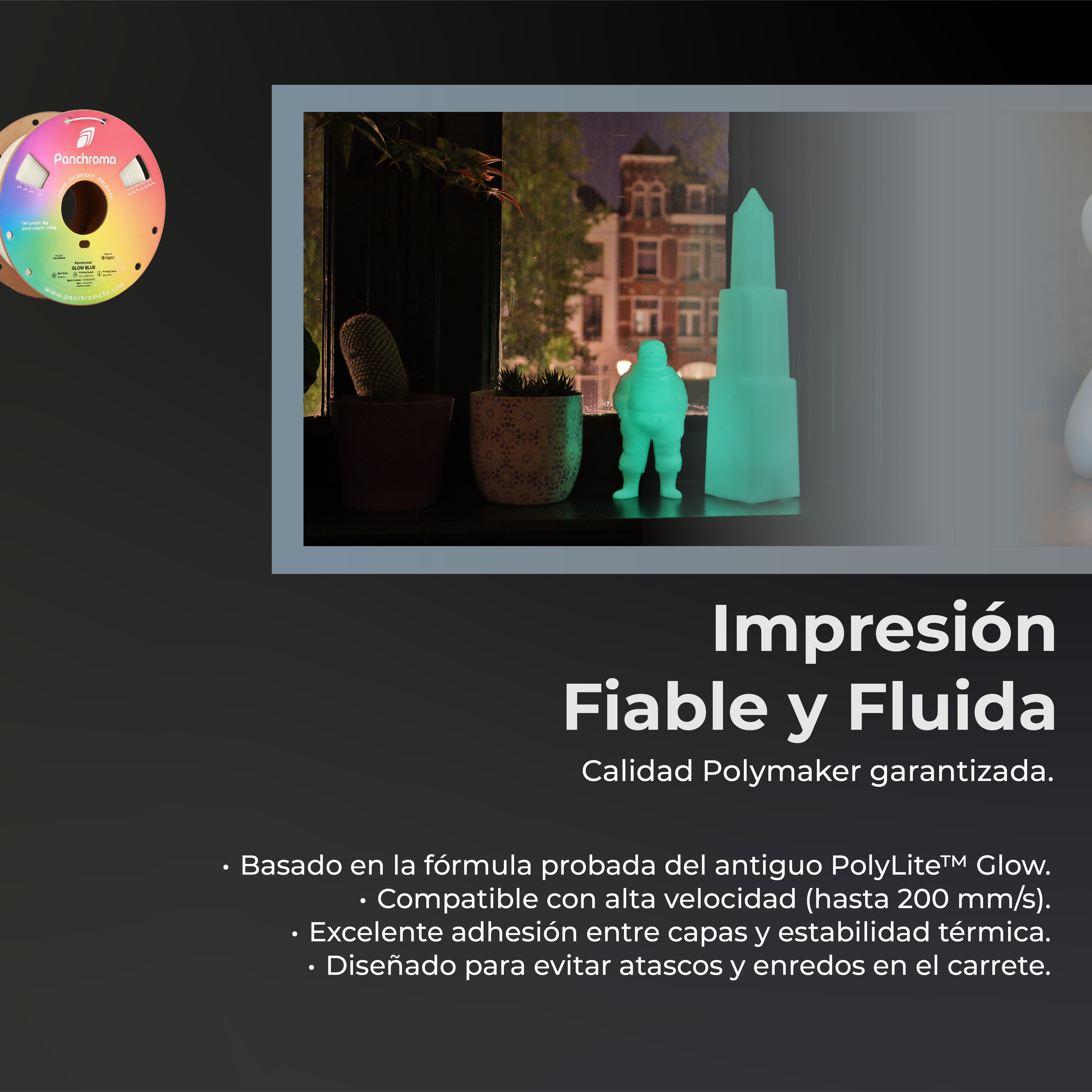 Entre las características destacadas del Panchroma™ Glow PLA se encuentran: