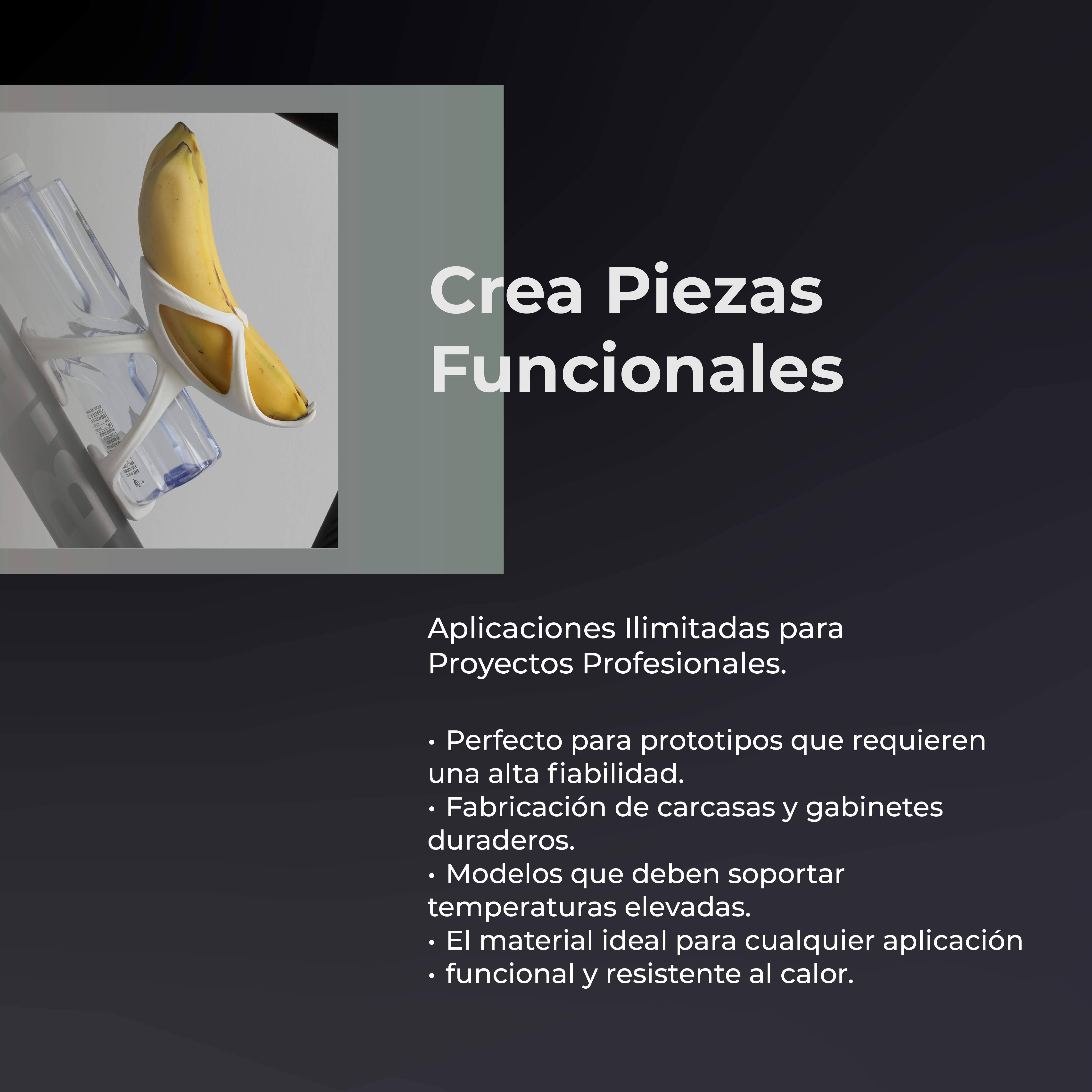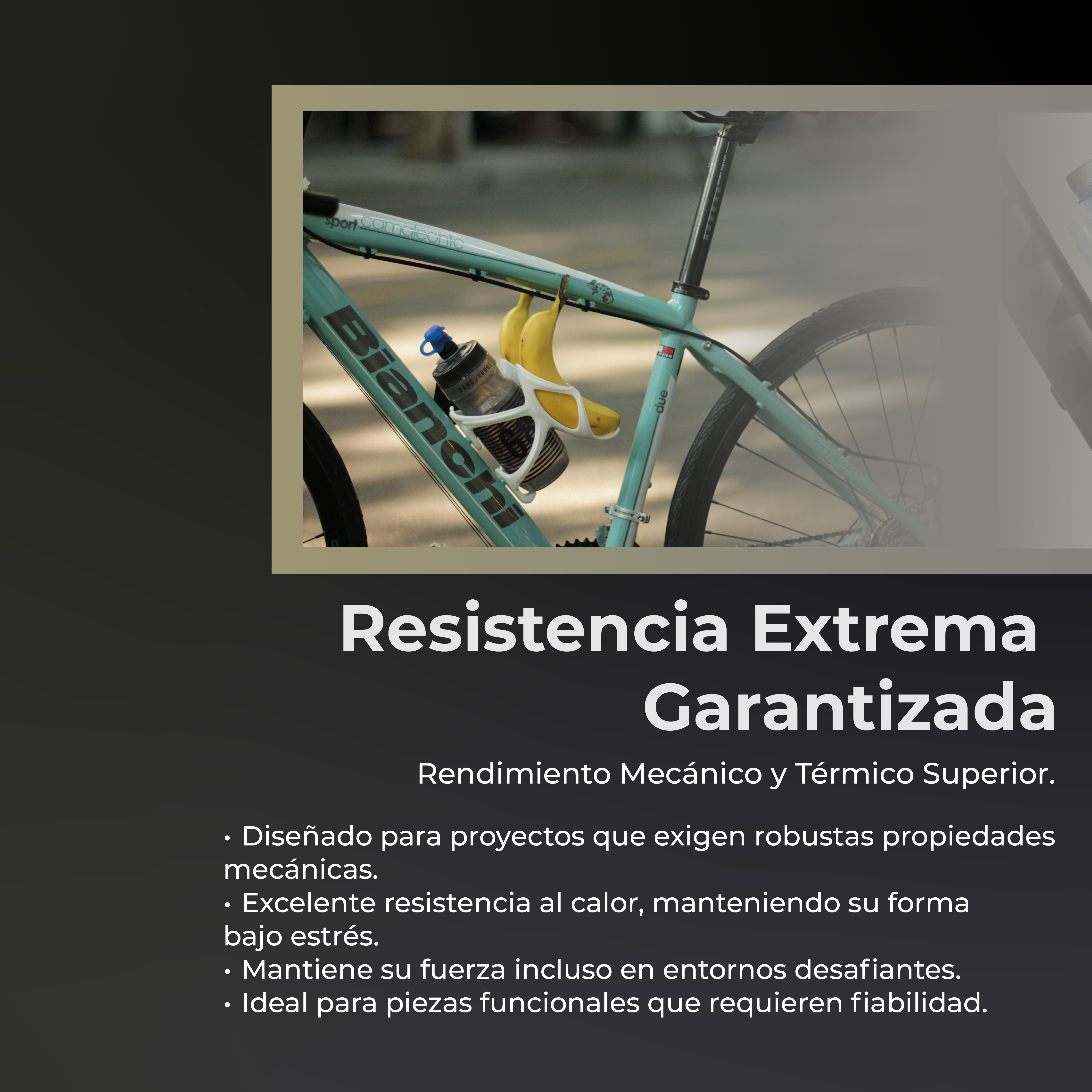 - Alta resistencia al impacto y al calor: Este filamento ofrece una excelente resistencia mecánica y puede soportar temperaturas de hasta aproximadamente 100°C, lo que lo hace adecuado para aplicaciones exigentes.
