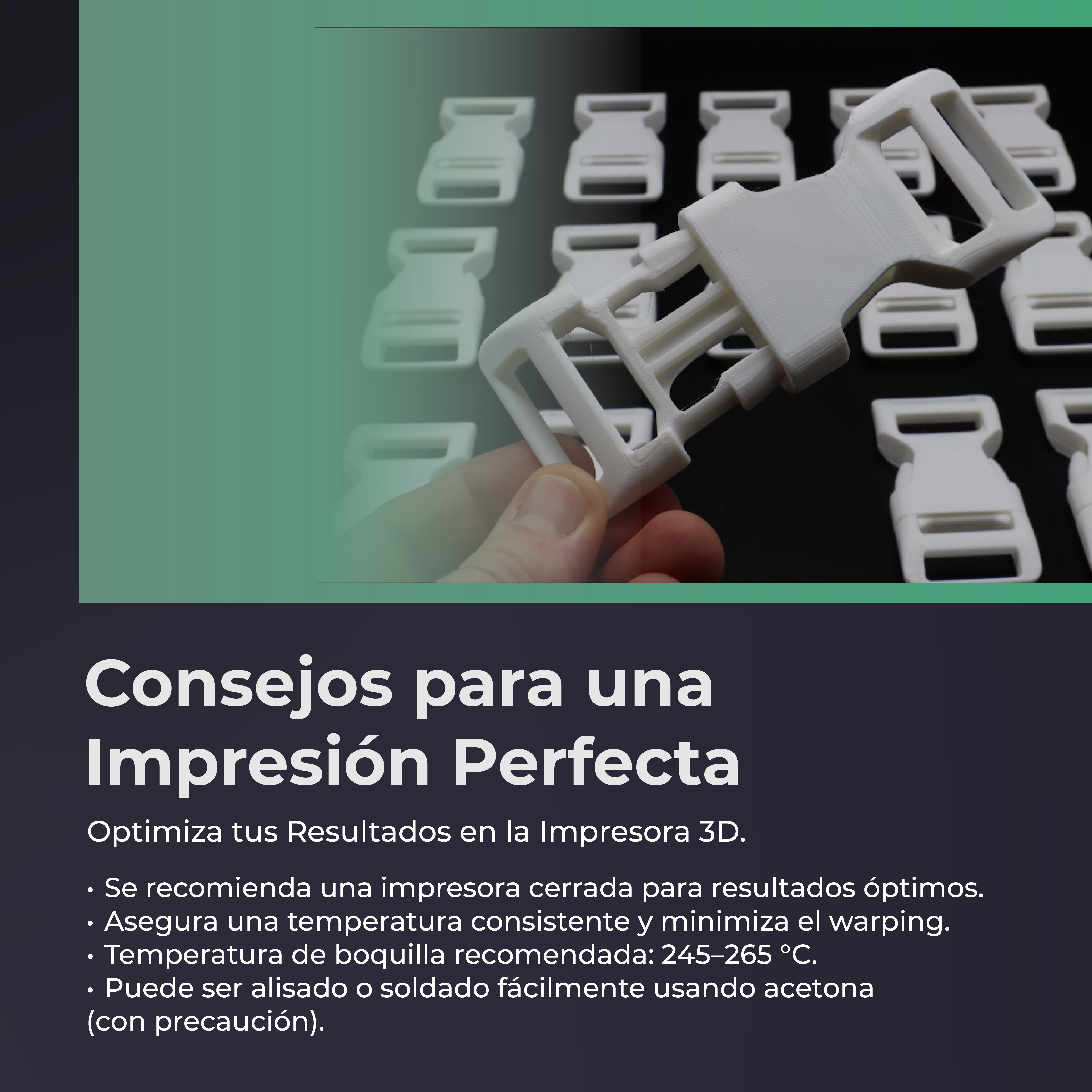 - Se recomienda utilizar una impresora 3D con cámara cerrada para minimizar el riesgo de deformaciones y mejorar la adhesión entre capas.