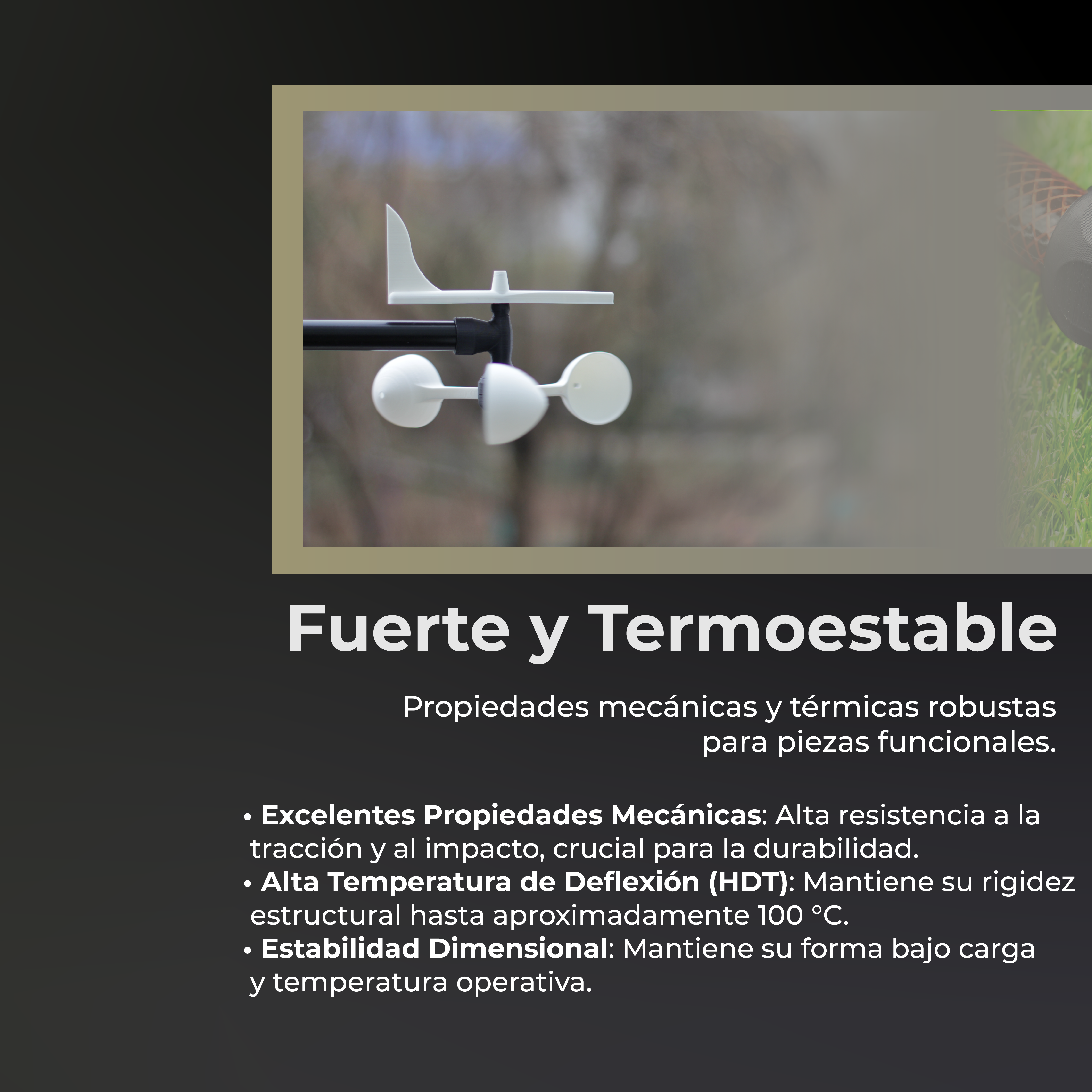 • Propiedades mecánicas excelentes: El PolyLite™ ASA mantiene una alta resistencia al impacto y una durabilidad notable, similares a las del ABS, pero con la ventaja añadida de una mayor estabilidad en exteriores.