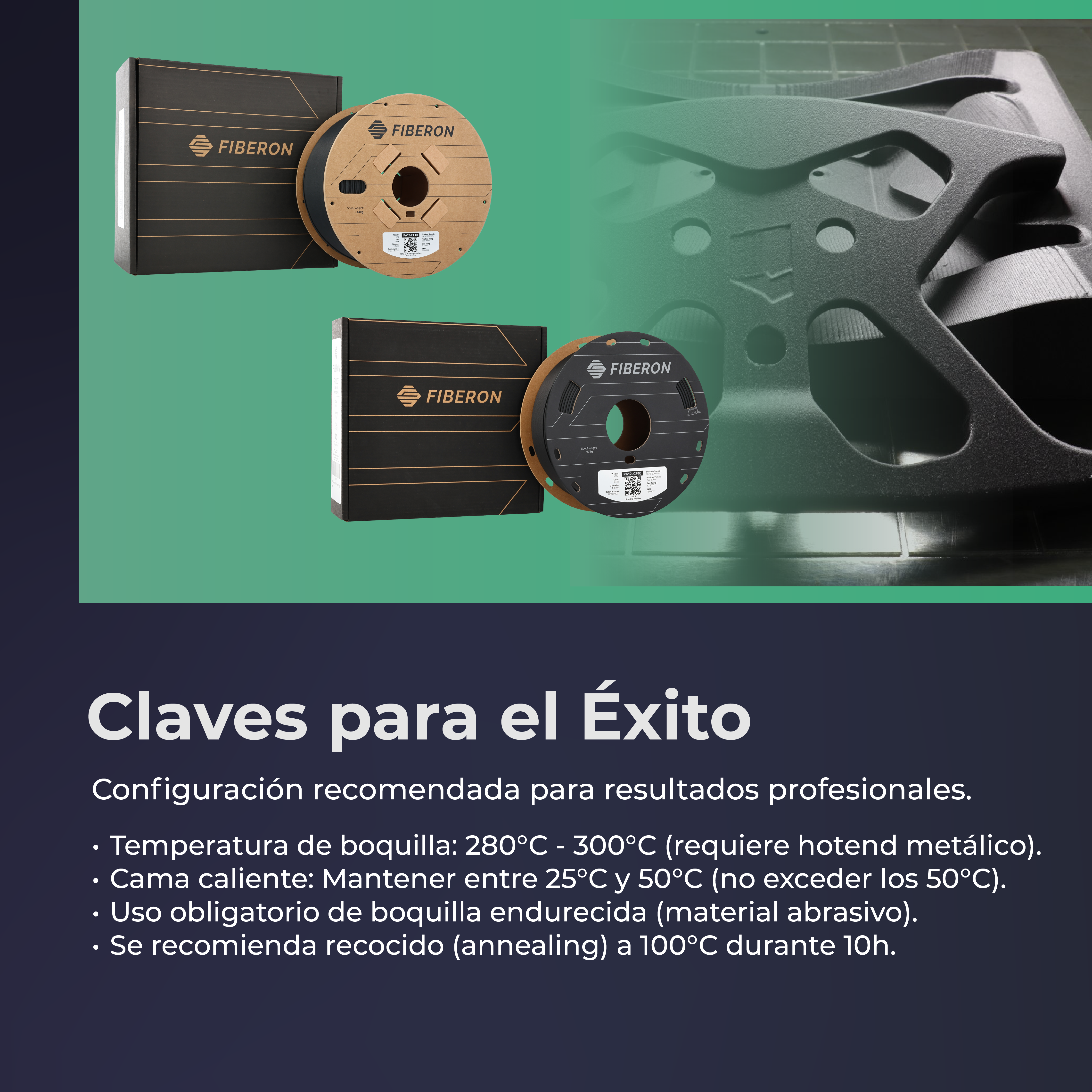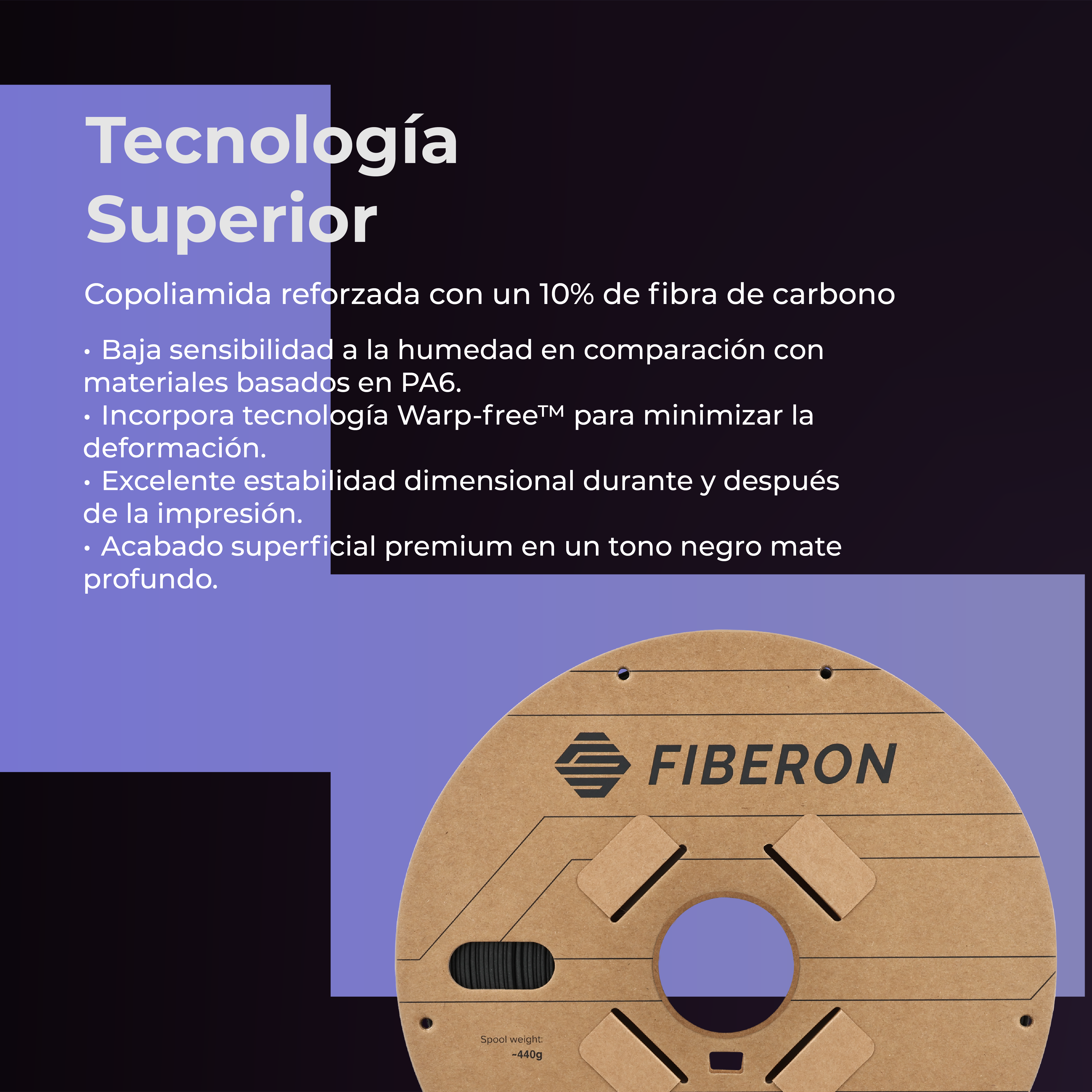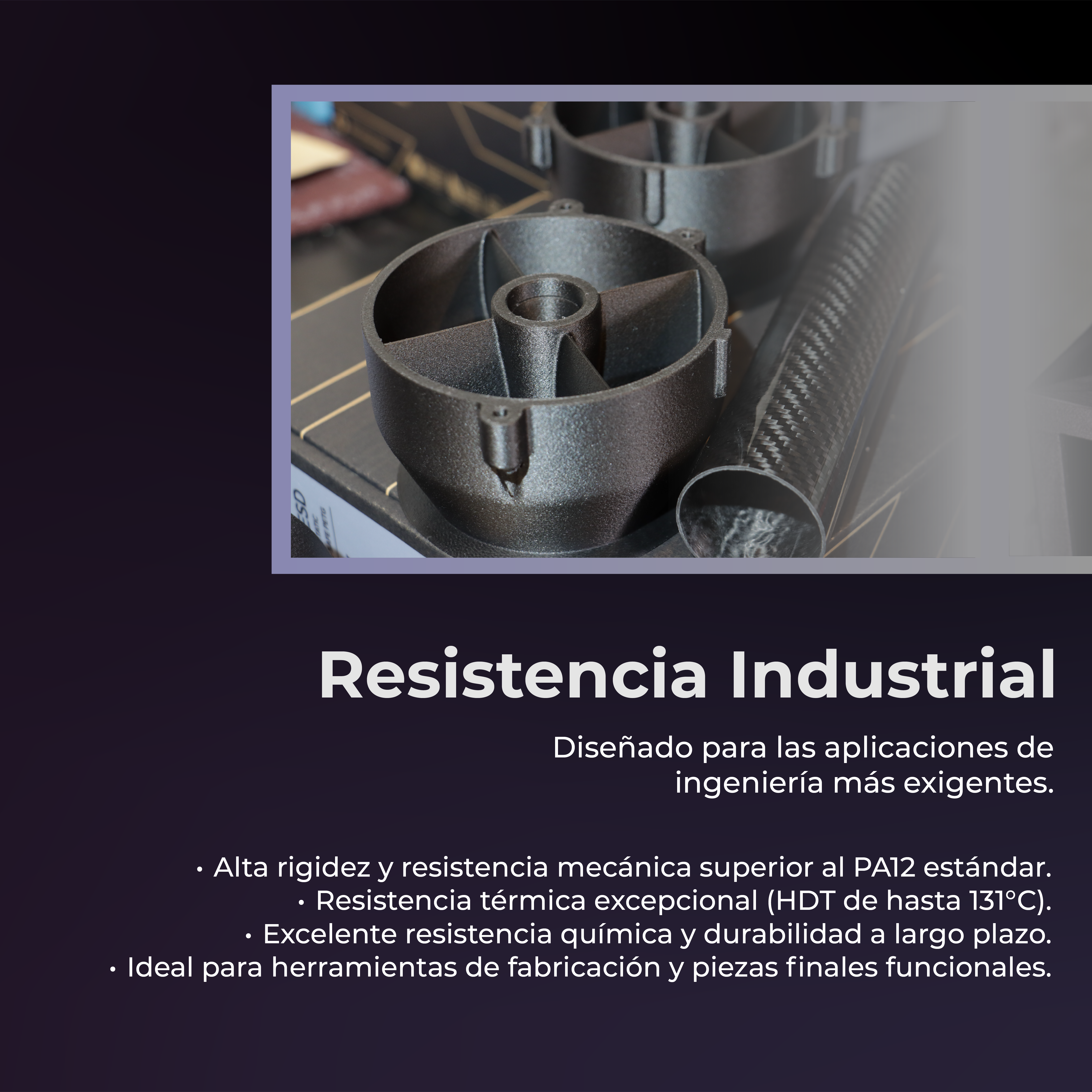 El Fiberon™ PA12-CF10 es un filamento de impresión 3D de alto rendimiento, compuesto por nylon 12 (PA12) reforzado con un 10% de fibra de carbono. Este material está diseñado para ofrecer una combinación excepcional de resistencia mecánica, baja absorción de humedad y facilidad de impresión, convirtiéndose en una opción preferida para aplicaciones industriales que requieren piezas robustas y precisas.