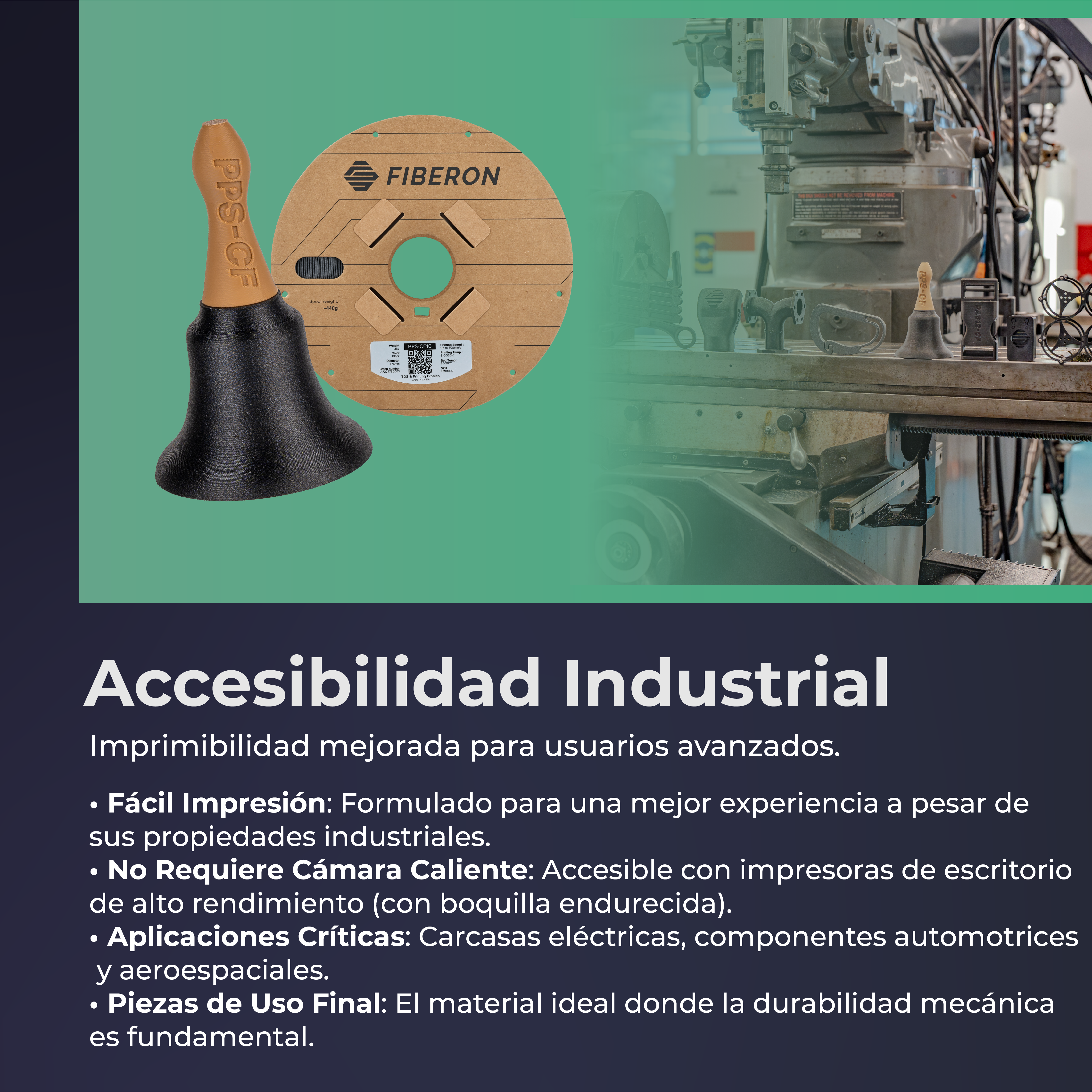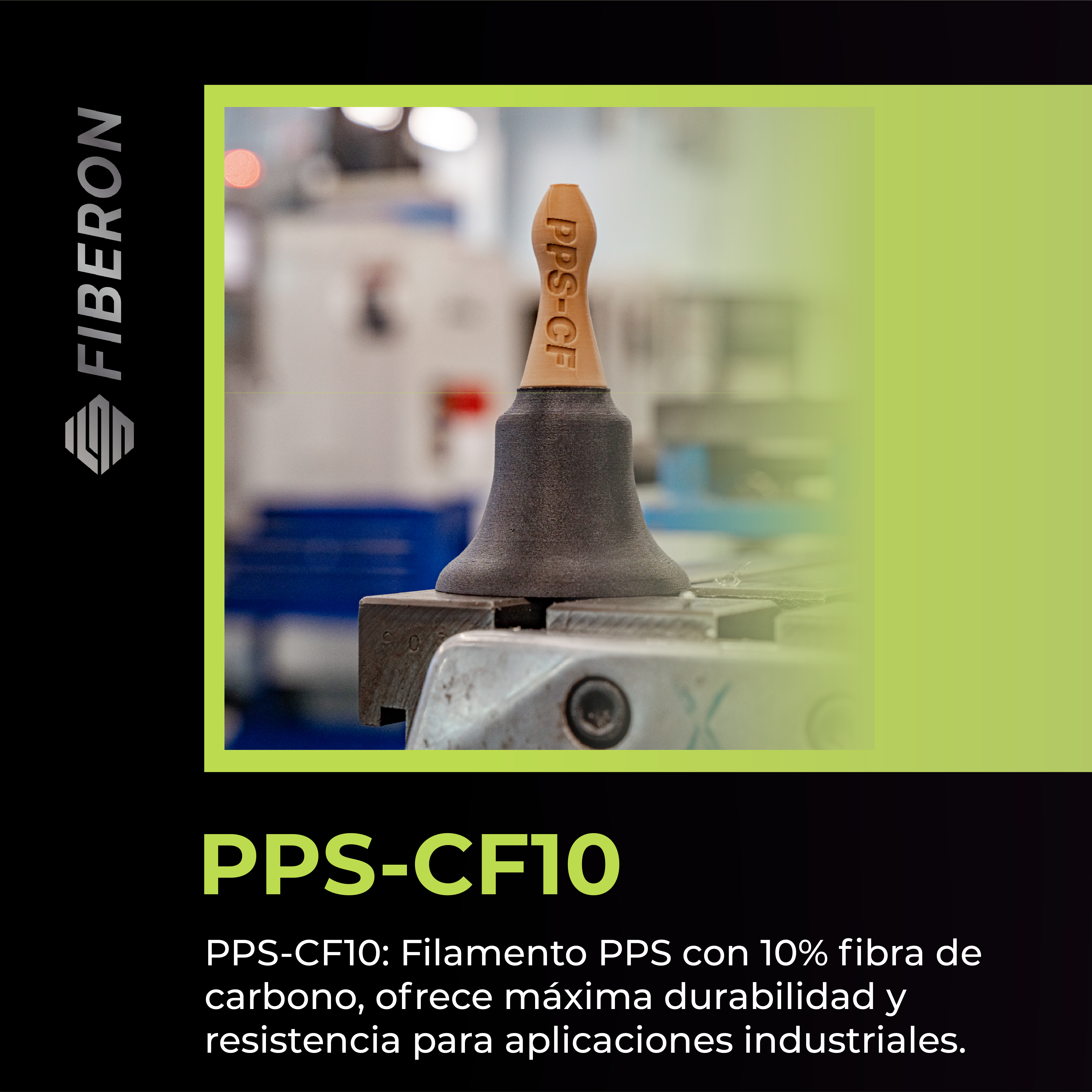 El Fiberon™ PPS-CF10 es un filamento de impresión 3D de alto rendimiento, compuesto por polifenileno sulfuro (PPS) reforzado con un 10% de fibra de carbono. Este material destaca por su excepcional resistencia térmica, química y mecánica, siendo ideal para aplicaciones en entornos exigentes.