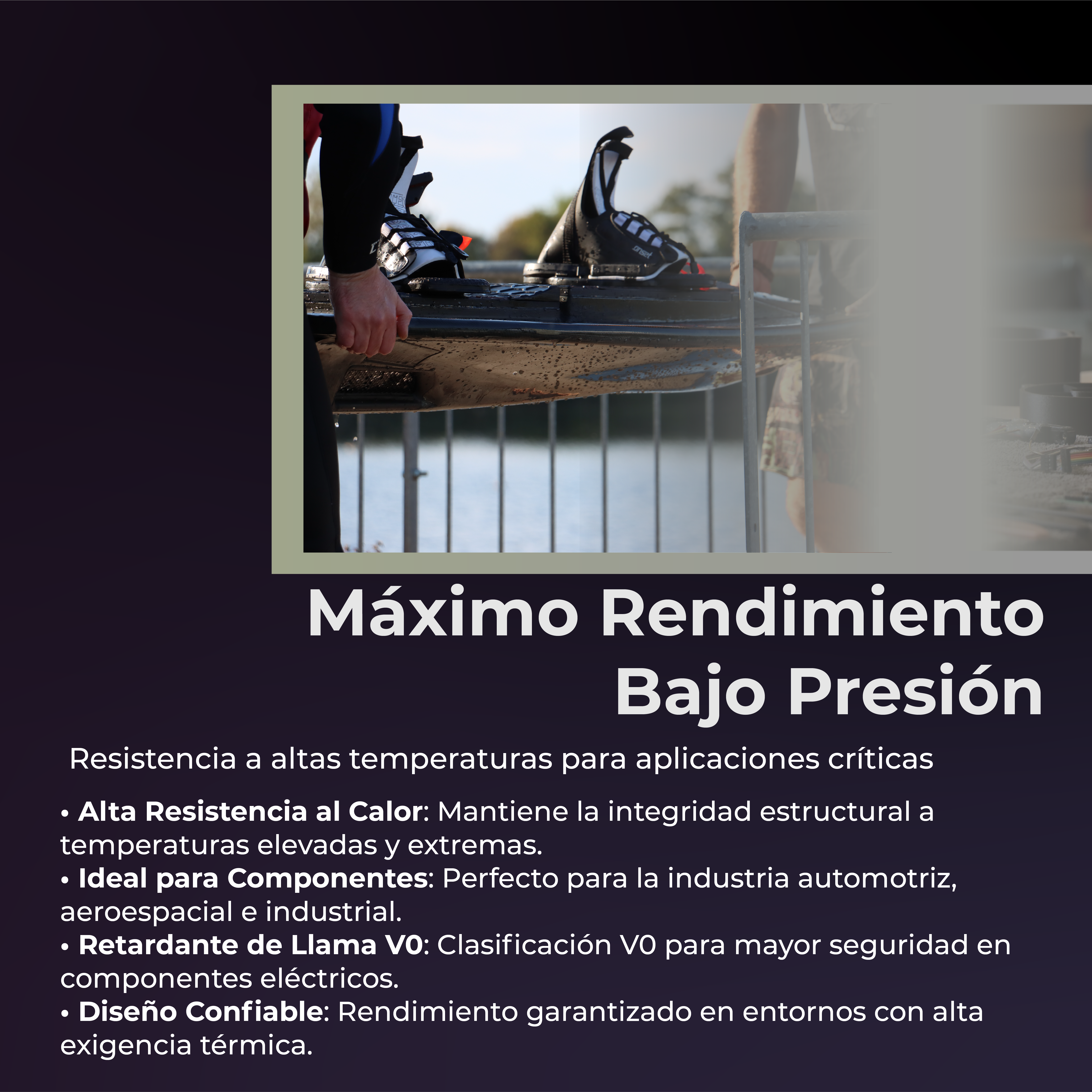 - Alta resistencia al calor: Posee una temperatura de deflexión térmica superior a 250 °C, lo que lo hace adecuado para aplicaciones que requieren estabilidad a altas temperaturas.