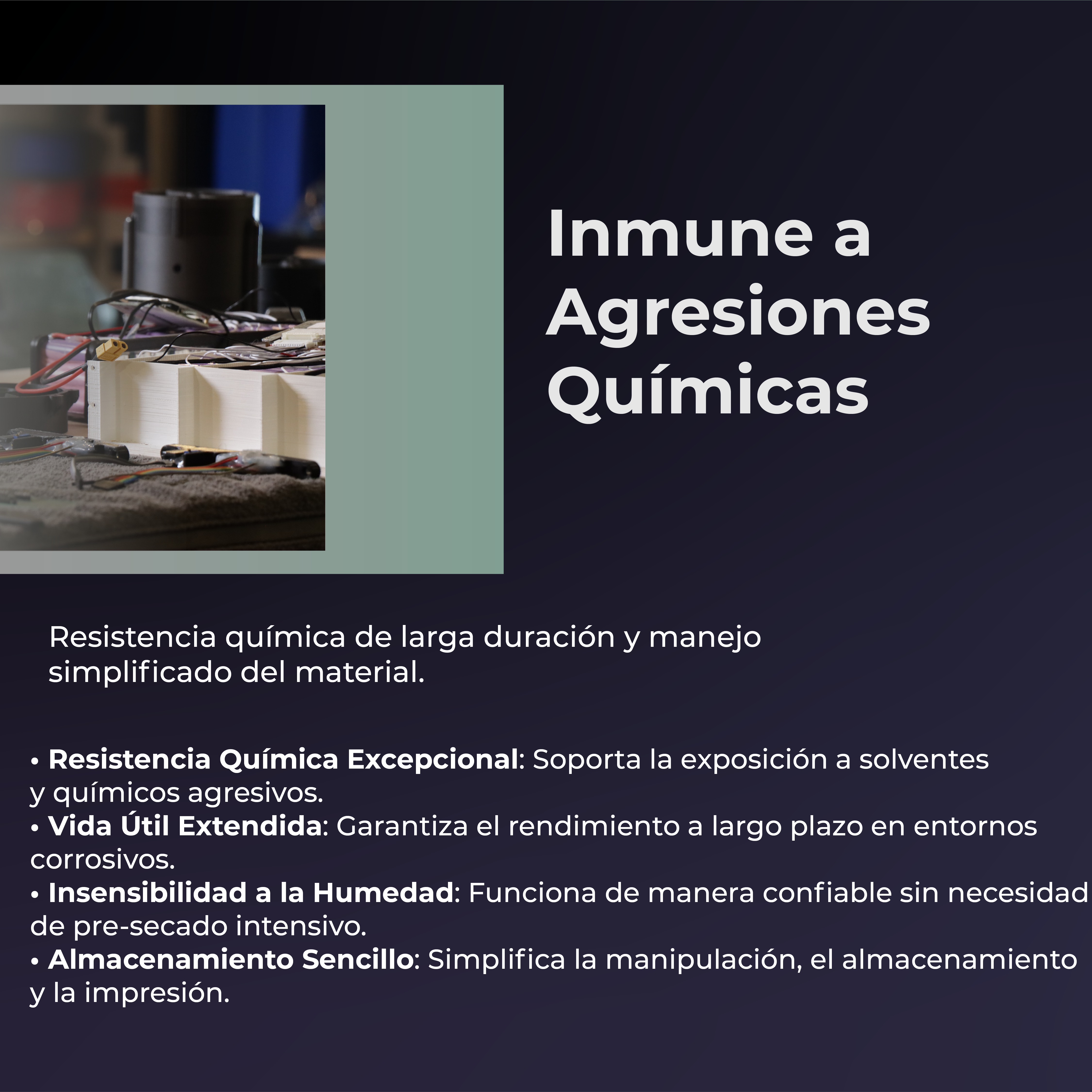 - Resistencia química: Es resistente a una amplia gama de ácidos, álcalis, combustibles y disolventes, ampliando su versatilidad en diversas industrias.