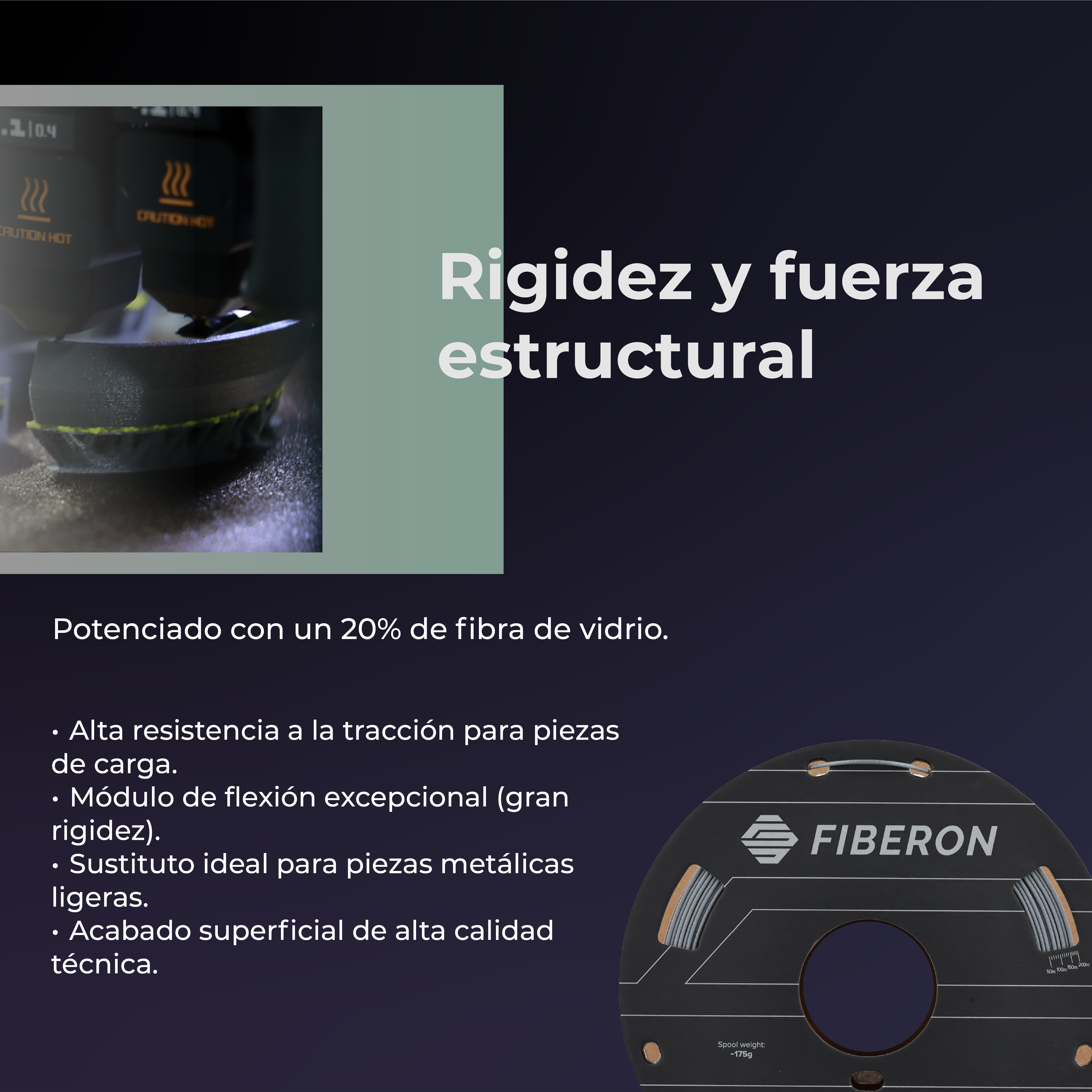 El Fiberon™ PPS-GF20 es un filamento de polifenileno sulfuro (PPS) reforzado con un 20% de fibra de vidrio, perteneciente a la línea Fiberon de Polymaker. Este material ofrece una excepcional resistencia química, mecánica y térmica, lo que lo convierte en la elección ideal para aplicaciones industriales de alto rendimiento.
